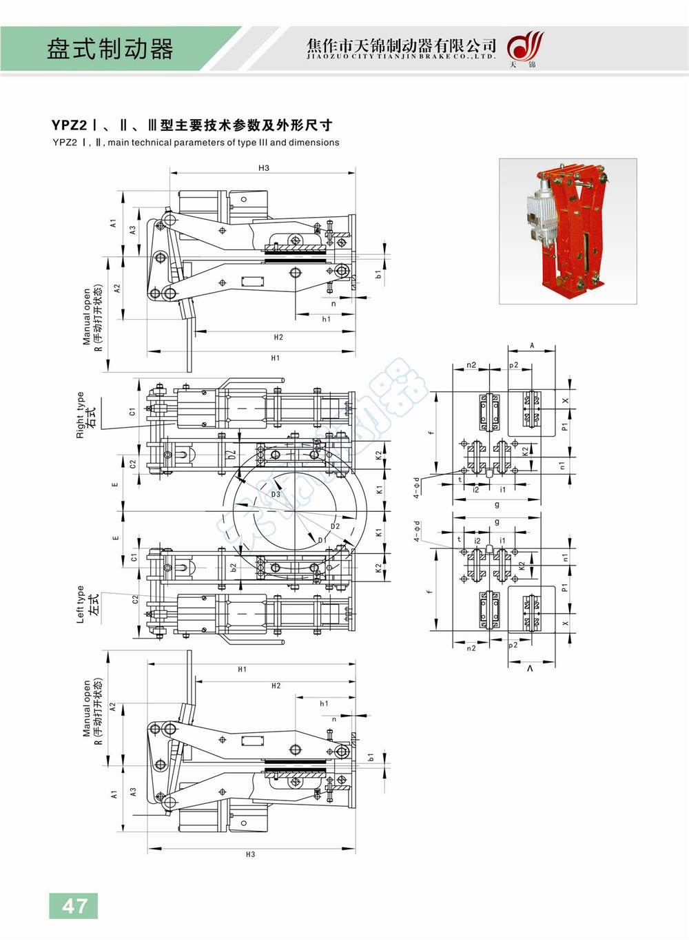 YPZ2Ⅰ、Ⅱ、Ⅲ電力液壓盤式制動(dòng)器系列