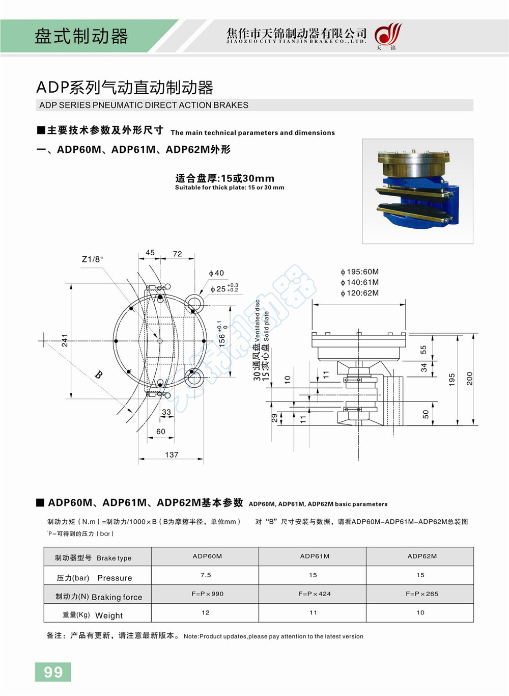 ADP系列氣動盤式制動器